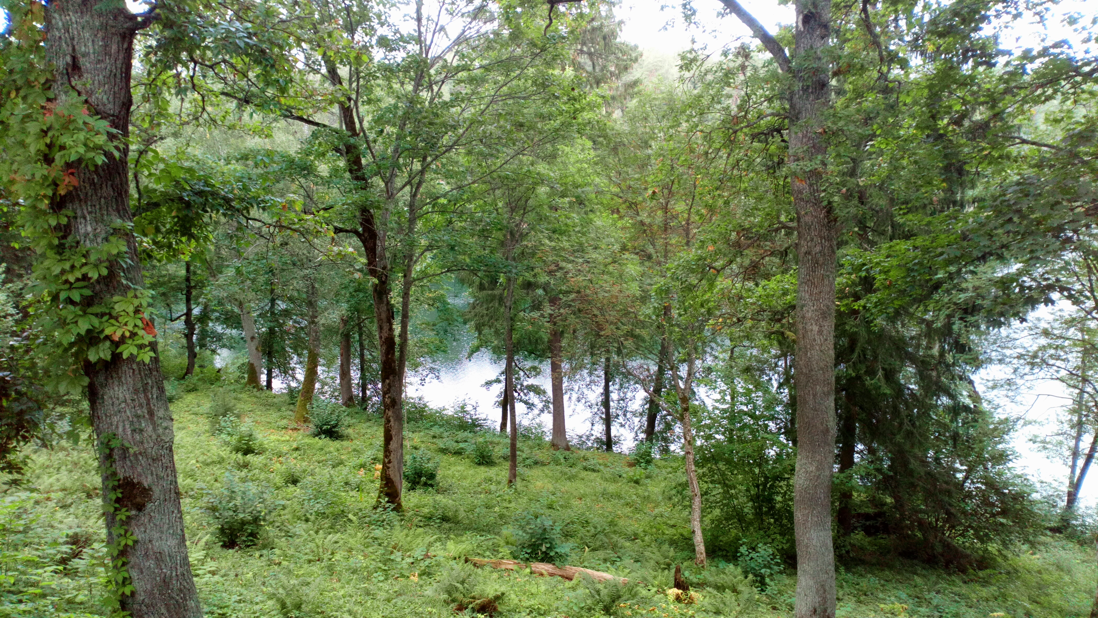 Medziai prie ezero